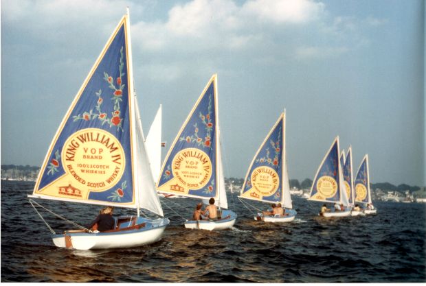“The concept was something that no one else had tried at the time,” Grant said. “I pitched the idea and was able land King William Scotch as our sponsor." Grant hired a handful of craftsmen to hand sew the giant highly detailed logos on the sails of more than a dozen boats.” The whole idea was kept as quiet as possible because Grant knew if the stodgy America’s Cup committee got wind of it, they would be horrified and do anything they could to keep Grant’s boats out of camera range.